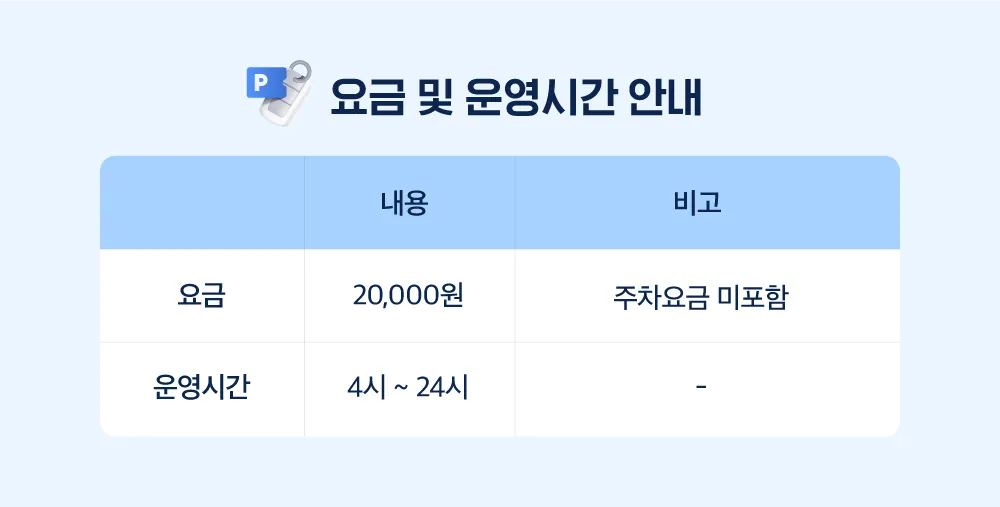 위 요금에는 주차요금이 미포함되어 있습니다.